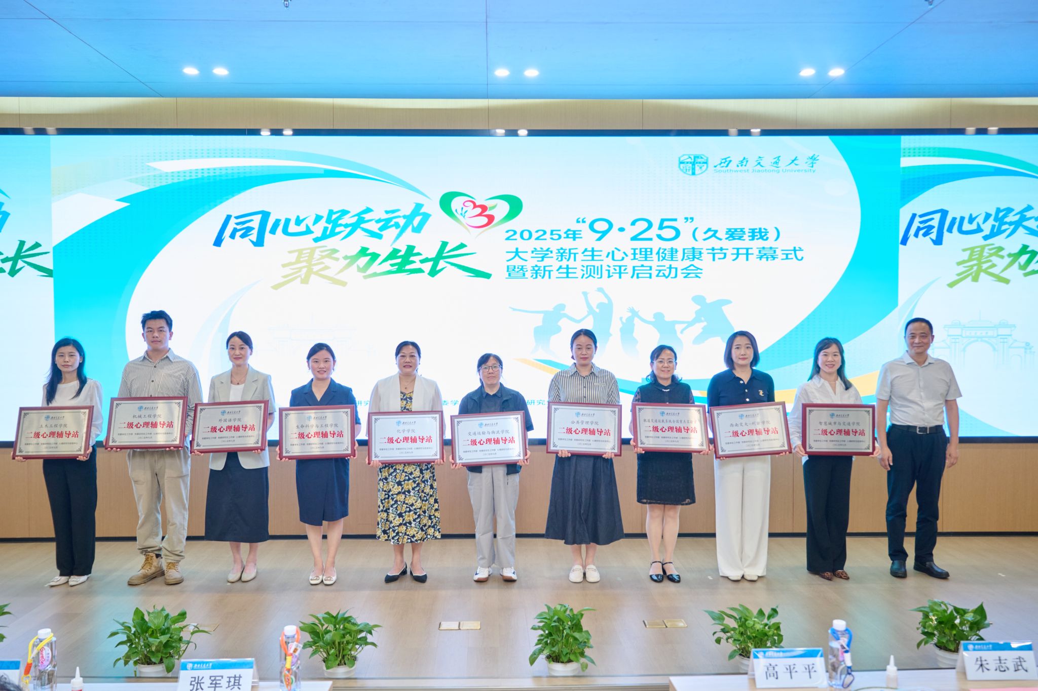 2025年“9·25”(久爱我)大学新生心理健康节启动仪式暨新生测评动员大会在犀浦校区举行。校党委副书记高平平出席仪式,并为全校10个二级心理辅导站试点建设单位授牌,含羞草