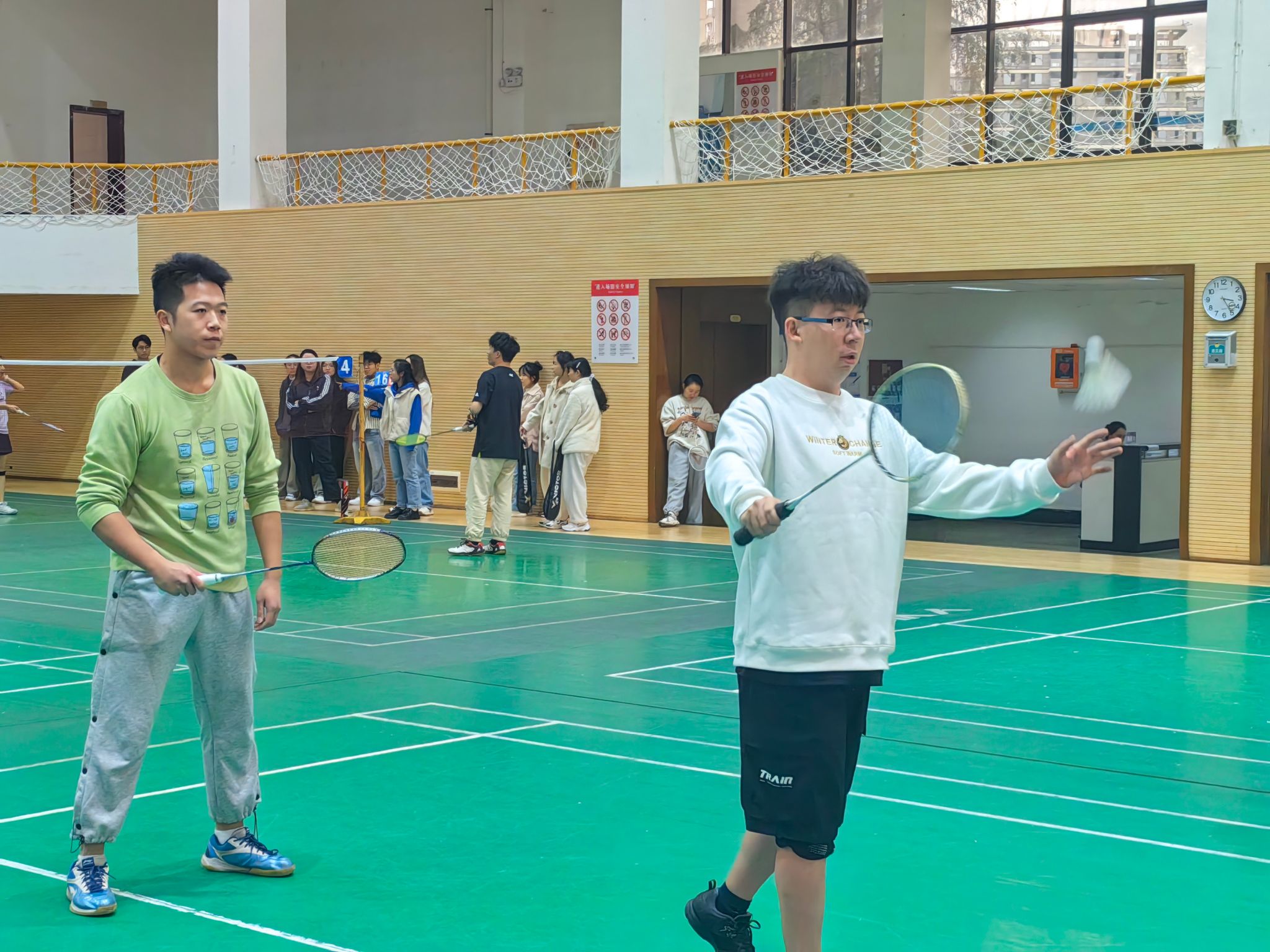 九里校区詹天佑体育馆隆重举办了联合羽毛球赛。