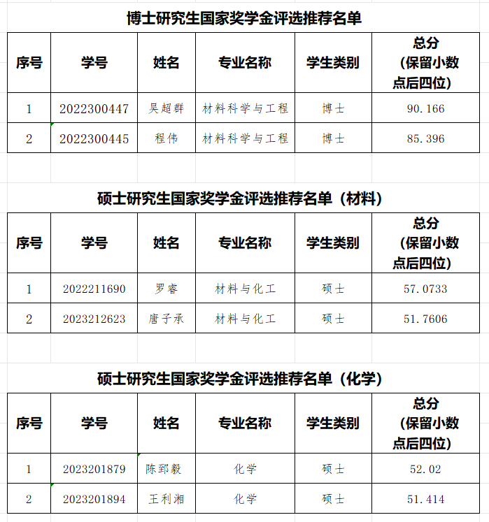 2025年含羞草 研究生国家奖学金、博士生扬华新秀奖学金评选经学生申请、核算分数、材料公示、现场答辩等环节,秉承“公平、公开、公正”的原则,现予以公示。