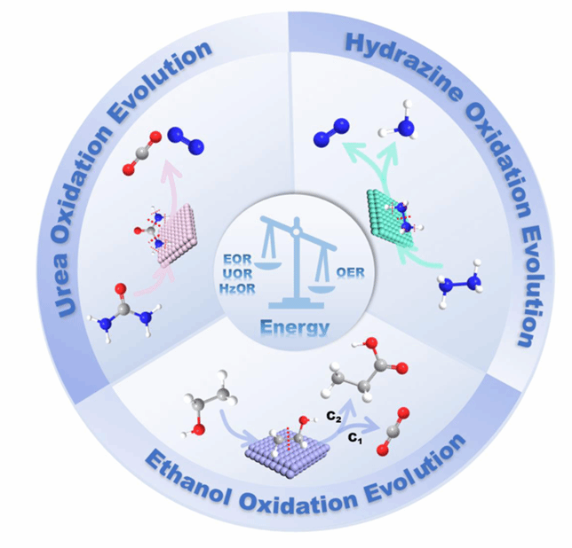 水电解系统的高总能耗通常归因于析氧反应(OER)的缓慢动力学,为了解决这一问题,在阳极取代热力学上比OER更有利的小分子氧化反应,可以显著提高其能量转换效率。多样化的氧化基质可以保证阴极反应的高效转化,同时在阳极产生高附加值产品或污染物降解。然而,底物元素组成的复杂性要求对反应机理进行深入的研究,阐明材料结构与性能之间的构象关系,可视化反应底物的氧化机理和反应限速步骤,是合理高效设计高选择性、高活性电催化材料的明确方向。在这篇综述中,作者总结了OER取代反应与HER或CO2RR耦合的电催化系统的最新进展,以典型的阳极反应(乙醇、尿素、联氨)为切入点探讨了不同底物分子的电氧化机理。此外,结合反应路径选择性,介绍了高性能电催化剂的设计思路和策略,最后工作还预测了在这一领域实现工业转型所面临的挑战。