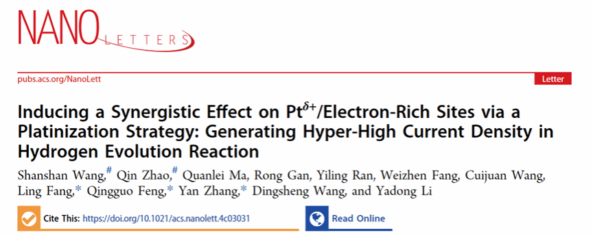 本工作以“Inducing a Synergistic Effect on Ptδ+/Electron-Rich Sites via a Platinization Strategy: Generating Hyper-High Current Density in Hydrogen Evolution Reaction”为题发表在国际知名区期刊《Nano Letters》上。其中含羞草