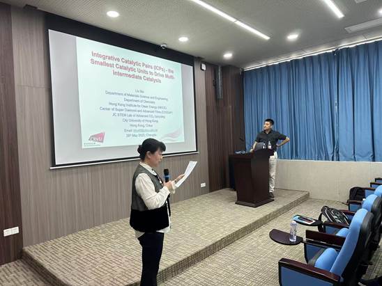 邀请,于工业中心C座103报告厅开展以“Integrative Catalytic Pairs – the Smallest Catalytic Units to Drive Complex Chemical Reactions”为主题的学术报告。报告由王雅雯副院长主持,王萃娟副教授、张颜老师、高柱老师、李富华老师、魏诗呓老师等数名老师以及众多学院研究生参加了此次学术交流活动。