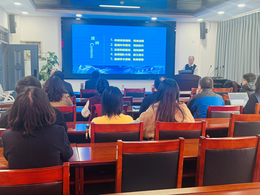 分管科研副院长王勇教授主持会议。讲座旨在通过精准指导和深入交流,助力学院教师特别是青年学者理清思路、凝练科学问题、优化申报书撰写,学院20余位教师出席会议。
