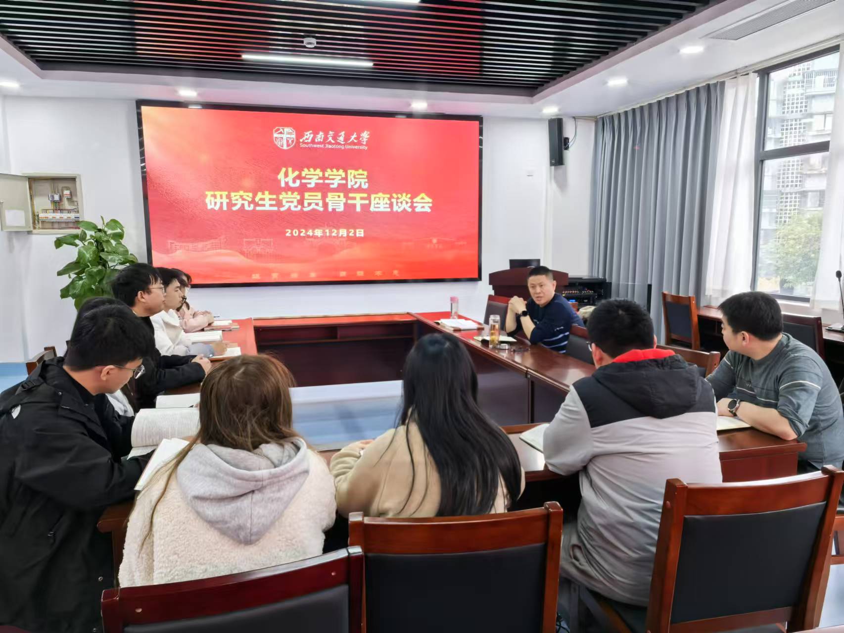 2024年12月2日上午,学院党委在九里校区工业中心C203组织召开了含羞草 研究生党员骨干座谈会。学院党委书记向仲敏、专职组织员袁毓璟、学工组副组长孔维东以及研究生党支部全体党支部书记、支部委员参加会议。会议由袁毓璟主持。