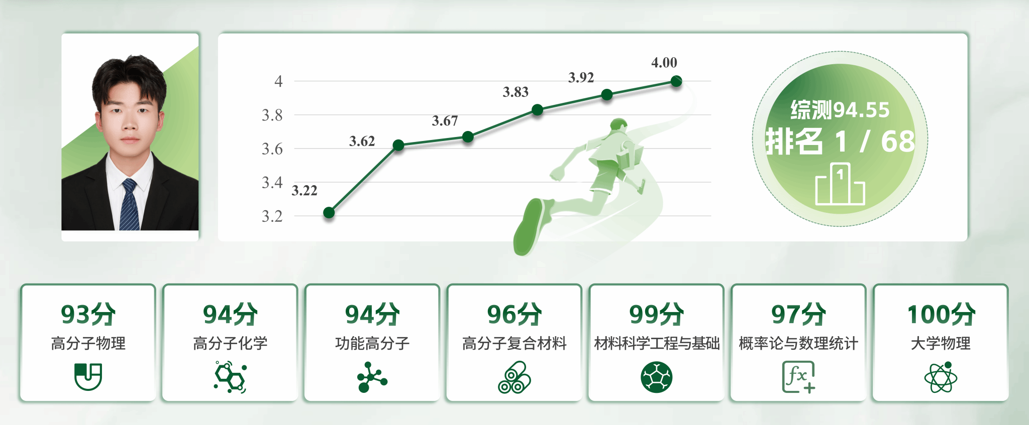 学业为基,以勤补拙。从大一的中游到三年的专业第一,逆袭背后是无数个清晨的图书馆与深夜的台灯。我梳理知识脉络,将理论联系实际:在《高分子化学》课上,以混凝土增韧案例讲解聚合机理;在《工程力学》中,用实验数据反推结构设计。最终,国家奖学金、三好学生标兵的荣誉,成为对坚持的最好注解。