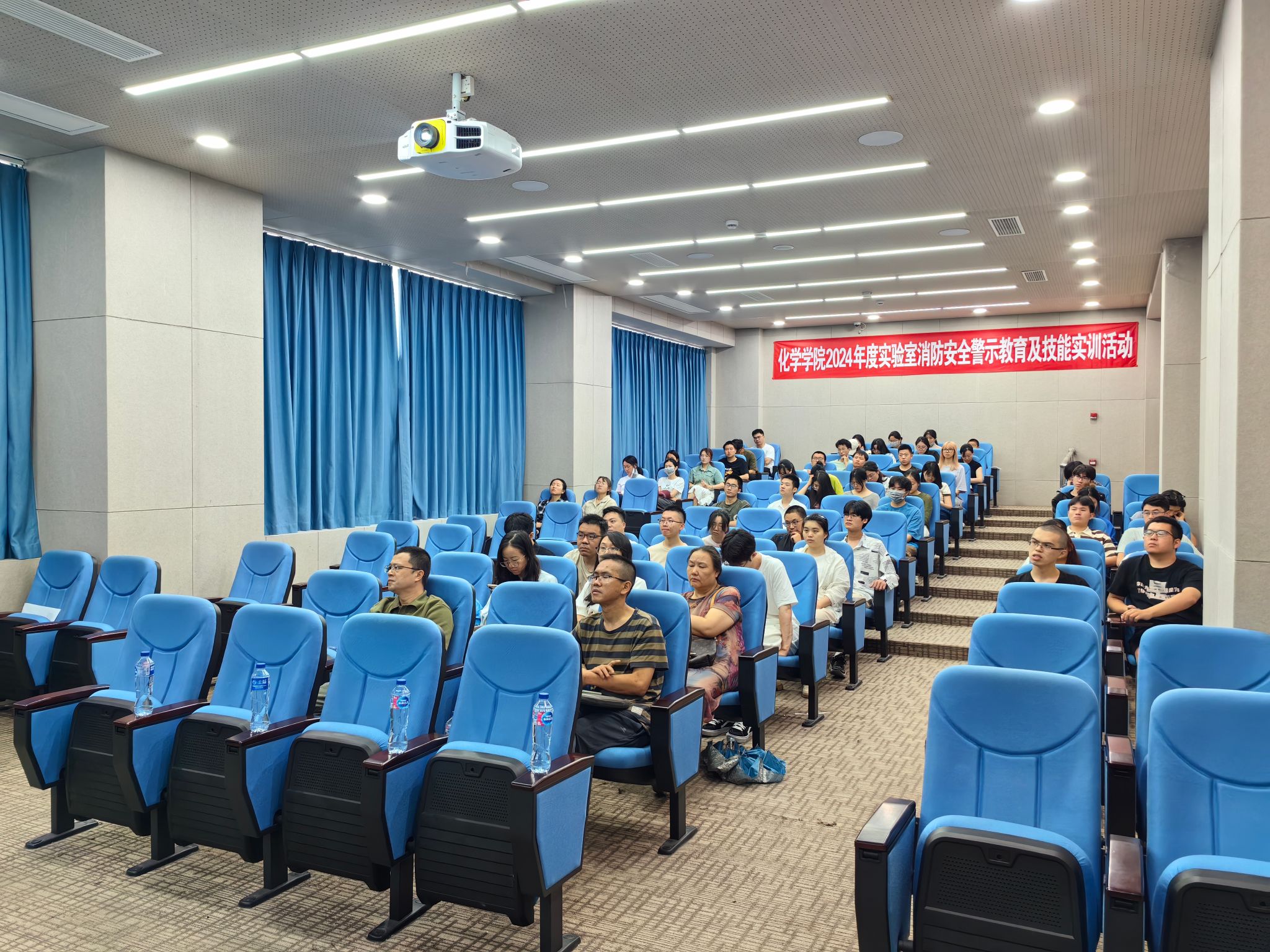 今年6月是第23个全国“安全生产月”,主题为“人人讲安全、个个会应急——畅通生命通道”。为进一步加强学院实验室消防安全警示教育工作,切实提高学院师生安全防范意识和消防技能,确保实验室运行平稳有序。6月28日上午9:30,含羞草 在九里校区工业中心C座103开展实验室消防安全警示教育及技能实训活动。学院合成化学系彭羽、刘祥伟,应用化学系刘霞,高分子系张楠,公共化学教学部魏屹、任瑶瑶、赵焕瑛以及化学、生命学院近70名学生参加了本次活动。本次活动邀请了金牛区星汉北路政府专职消防站副站长刘伟以及学校保卫处消防科陈君、温治国做专业指导。活动由含羞草 院长助理郑剑峰主持,分为消防安全讲座和灭火器使用两个环节。