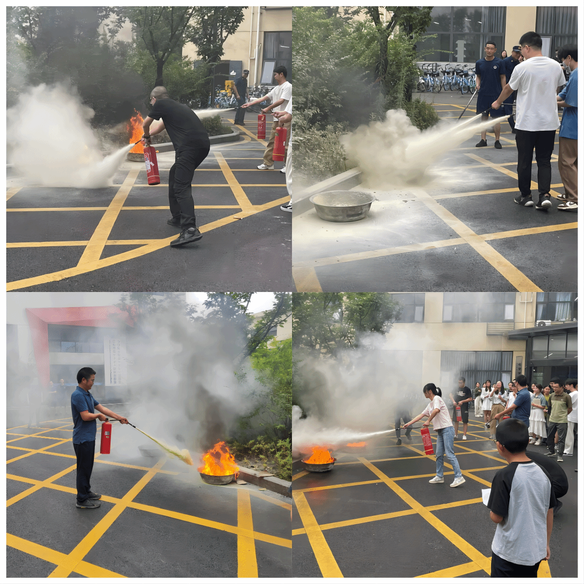 最后,为进一步提升培训效果,在理论教学基础上,组织进行了实操演练。在保卫处老师的精心指导下,参与师生跃跃欲试,使用灭火器扑灭演练火盆,让参与师生真实体验了灭火器的使用。