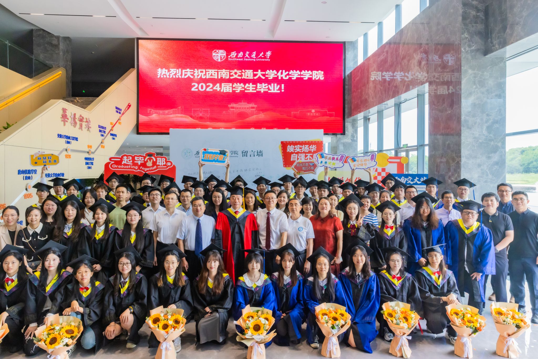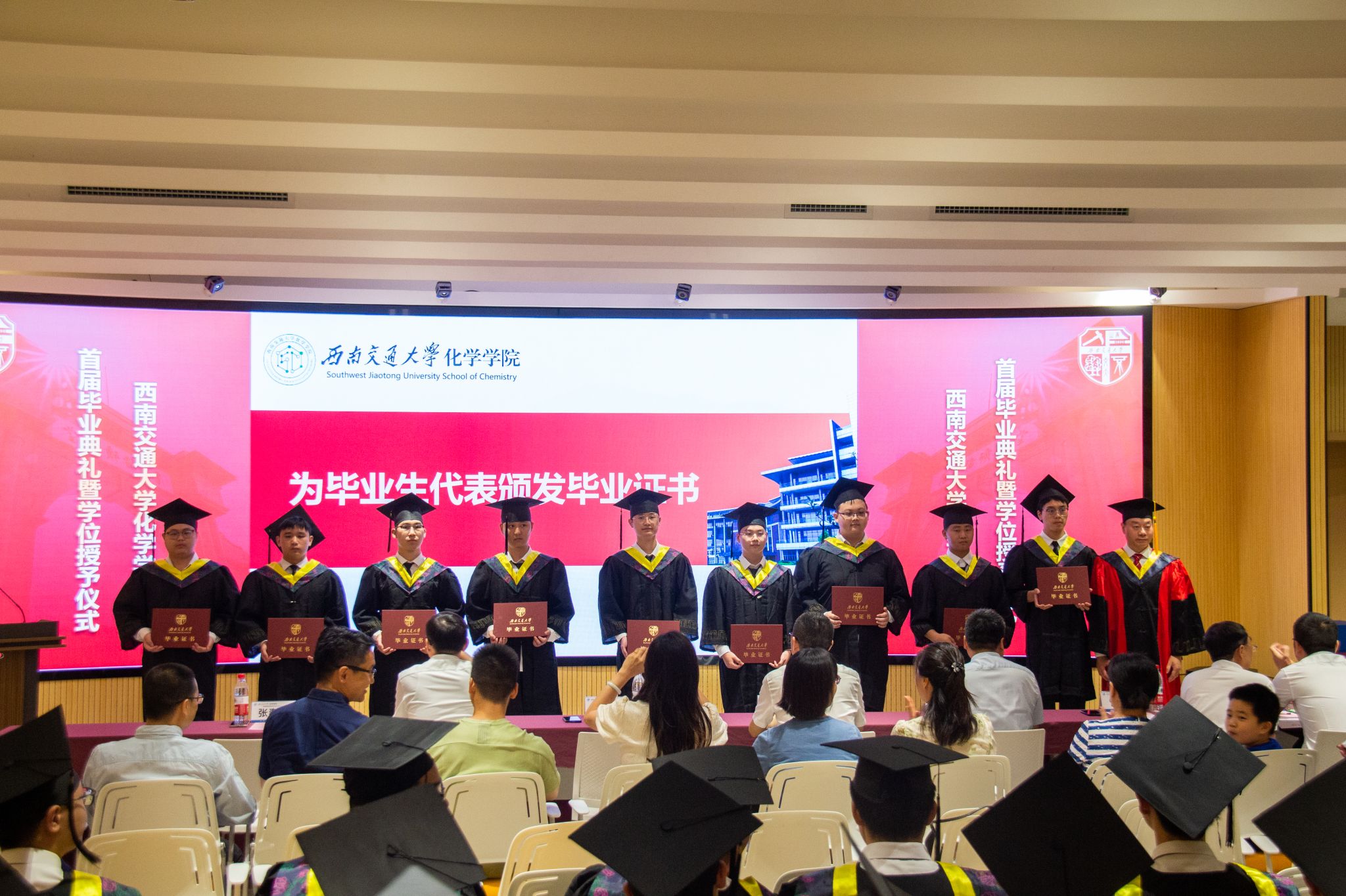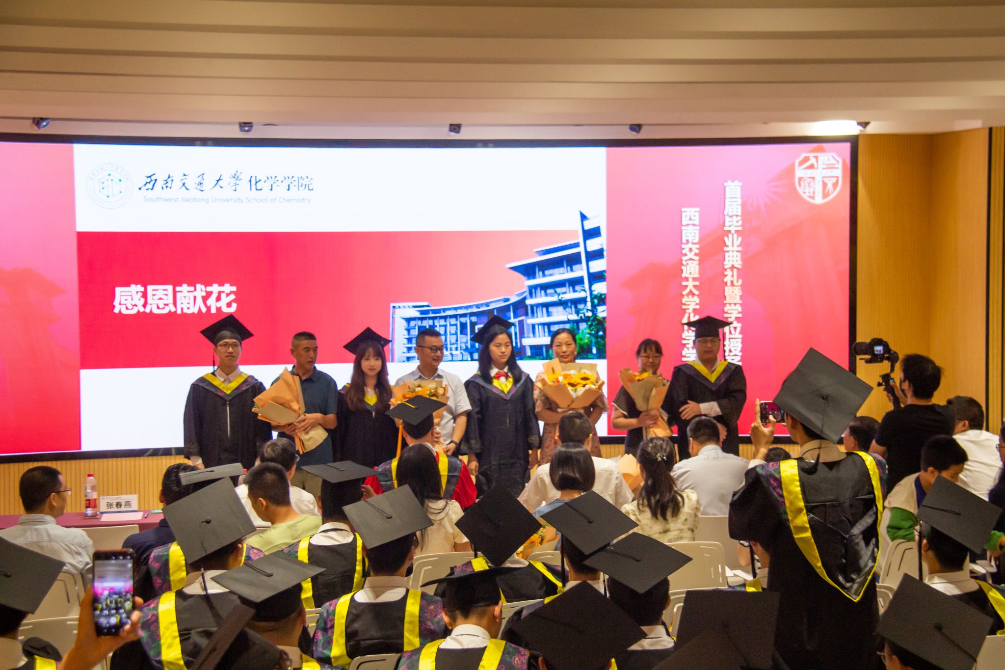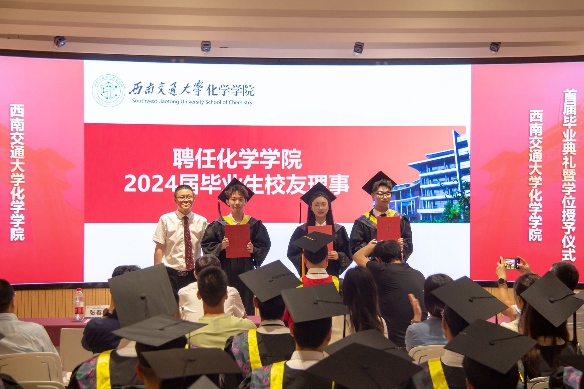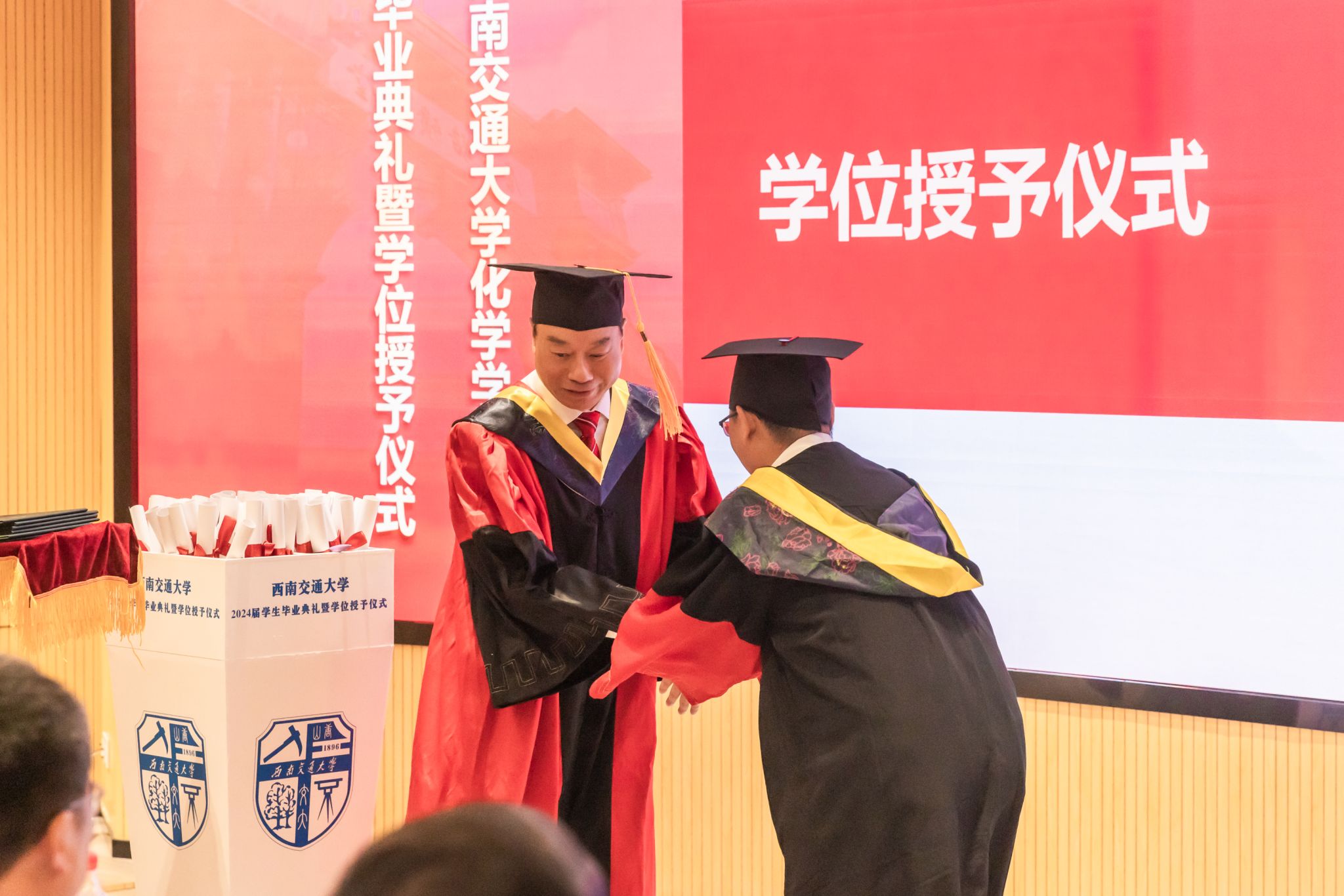 2024年6月22日上午,含羞草 2024届学生毕业典礼暨学位授予仪式在含羞草 犀浦校区隆重举行。含羞草 党委书记向仲敏,院长周祚万,党委副书记张春燕,副院长王勇、崔树勋,院长助理郑剑峰,离退党支部书记管棣,高分子系主任杨静晖、副主任高霞,化学专业负责人王雅雯,合成化学系主任彭羽,应用化学系主任王萃娟,公共化学教学部主任刘睿颖,原本科2020级学生辅导员郑纪伟,本科2020级学生班导师,专业课教师,学生工作组全体辅导员,全体本科毕业生、研究生毕业生代表及学生家长出席典礼。典礼由张春燕副书记主持。
