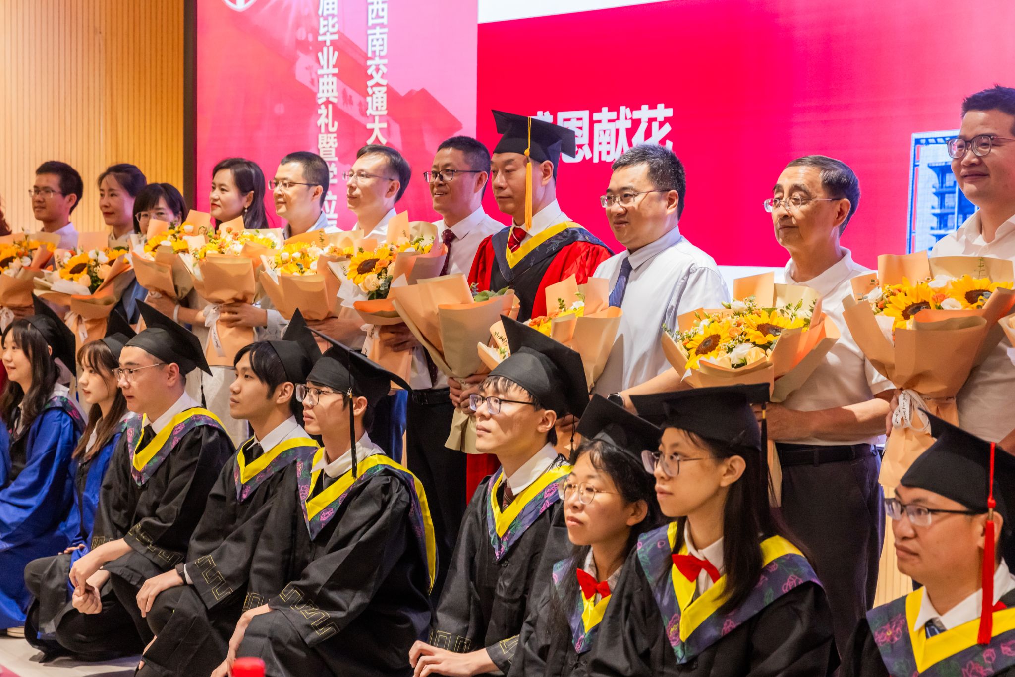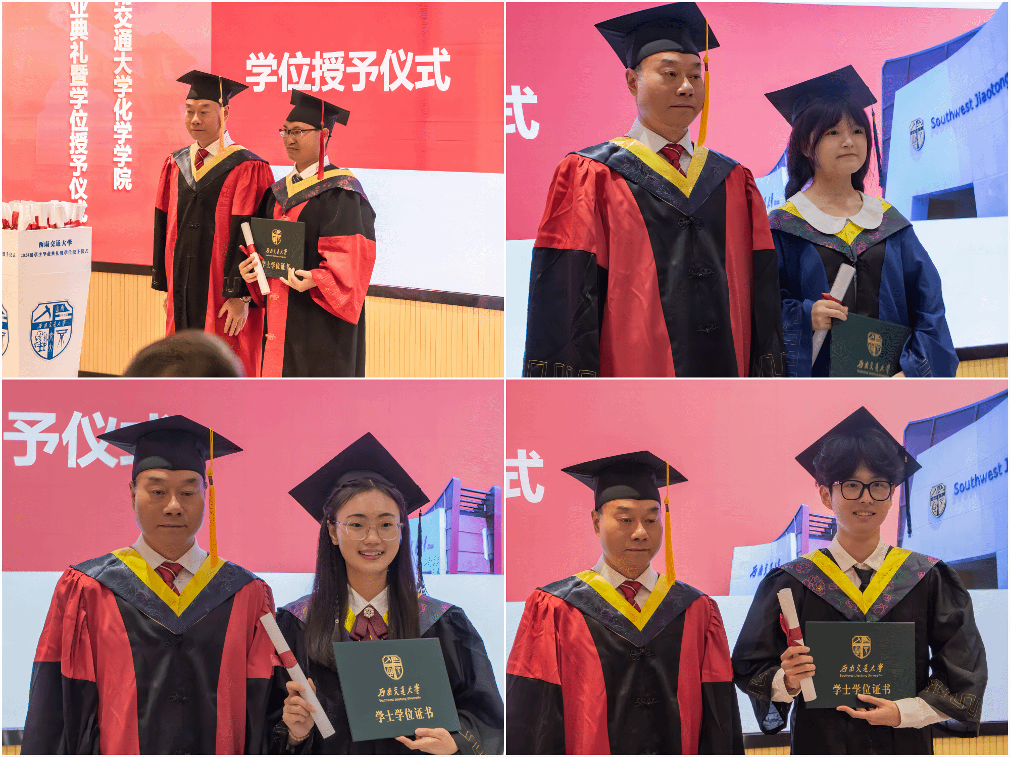 接着,学院举行了2024届学生学位授予仪式。周祚万院长逐一为2024届博士毕业生、硕士毕业生、本科毕业生授位。毕业生们依次上台接受院长拨穗授礼,并合影留念。